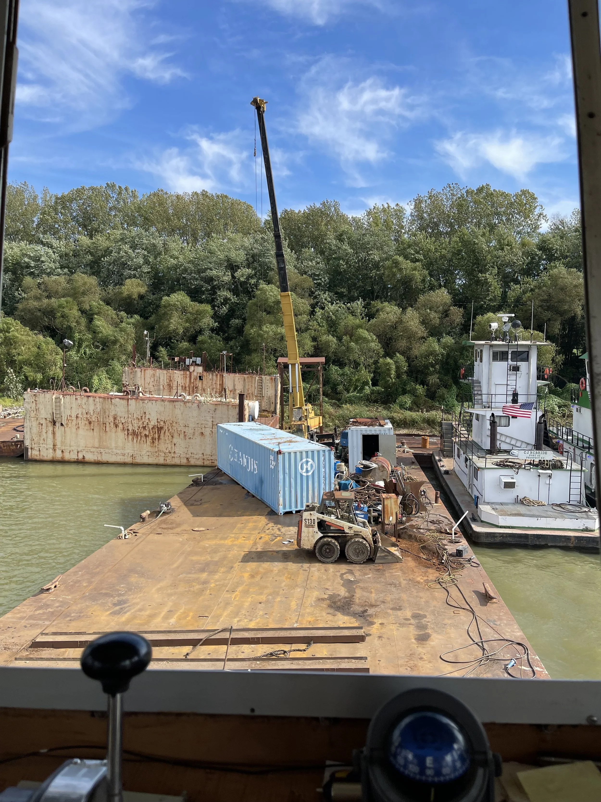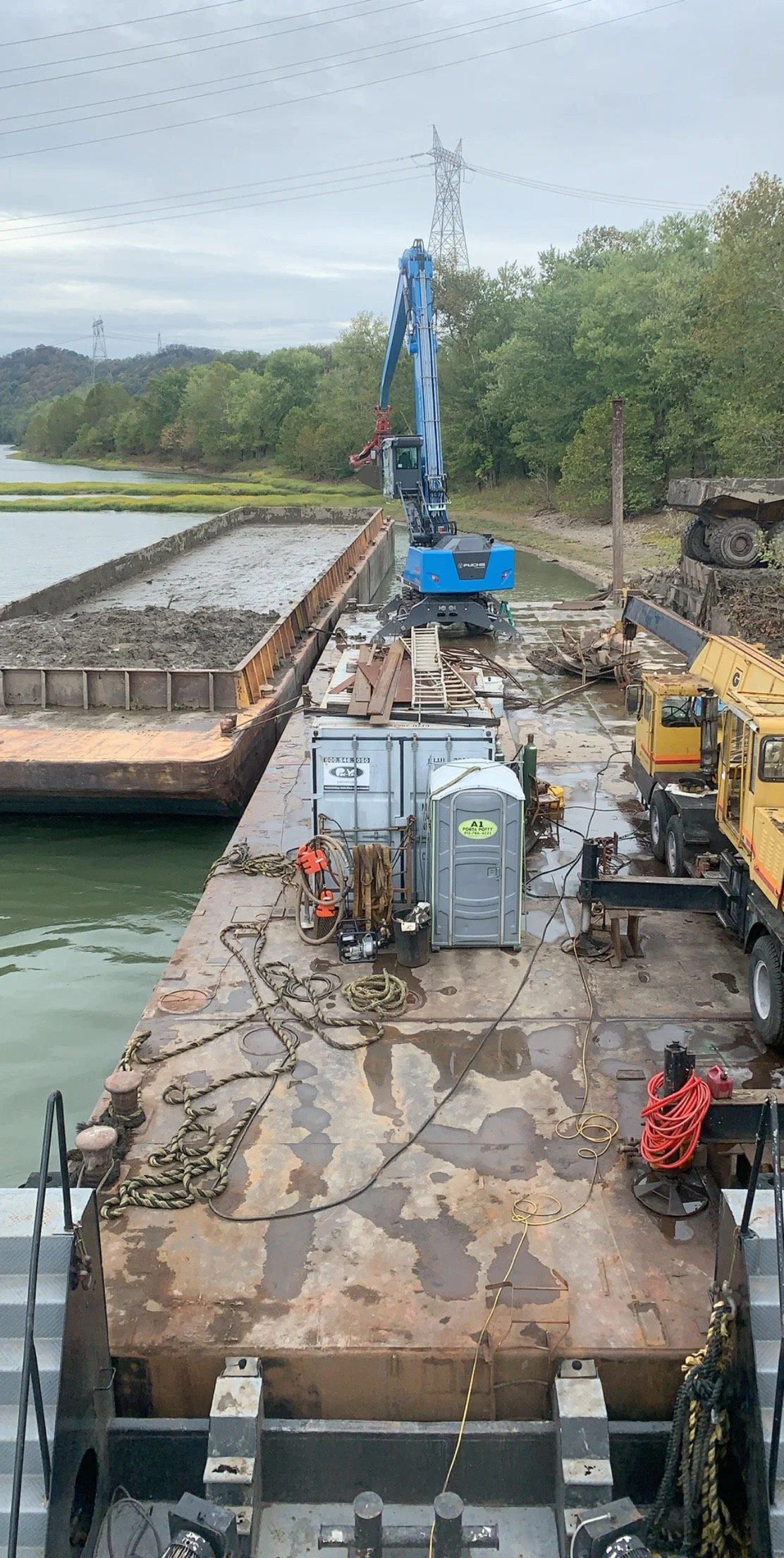 Need some lifting or just a flat deck barge to work off of? We operate a spud barge that can handle just about any job on the Ohio whether its for specialty equipment like a core drill or just a nice floating work area.